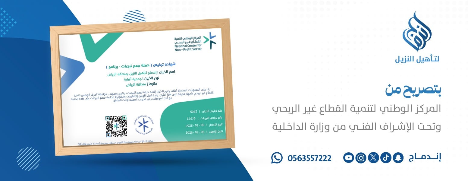 تأسست الجمعية بتاريخ 1444/05/24هـ بتصريح رقم | 5082 | صادر من المركز الوطني لتنمية القطاع غير الربحي وتحت الإشراف الفني من وزارة الداخلية ، ويرتكز نشاطها على تأهيل وتدريب النزلاء بمنطقة الرياض وذلك لدمجهم مع أسرهم ومع المجتمع ليكونوا أعضاء فاعلين لخدمة