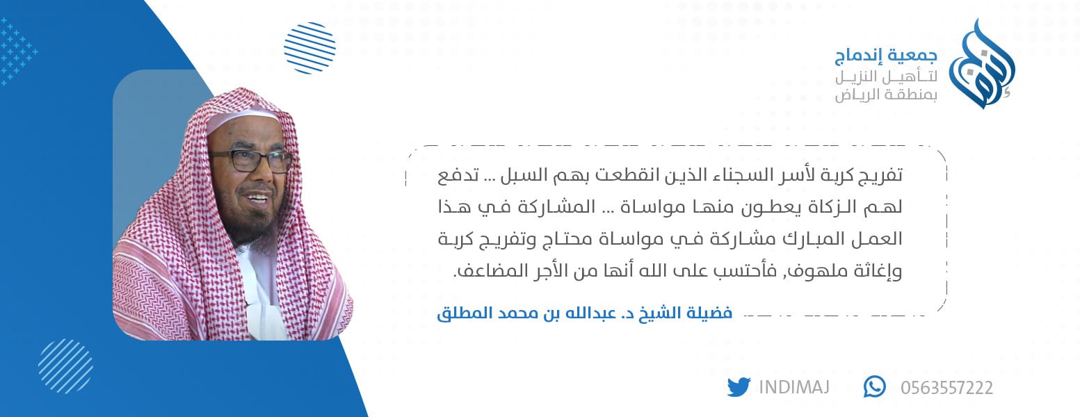 جمعية متخصصة، تسعى لتمكين النزيل والمفرج عنهم وأسرهم وتطوير قدراتهم وإدماجهم في المجتمع من خلال مبادرات نوعية وطرق مبتكرة وشراكات استراتيجية.